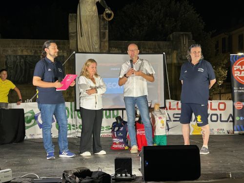 Numeri da record per l'edizione 2025 di un appuntamento diventato ormai tradizionale nel mese di settembre e che quest'anno è stato anche impreziosito dalla presentazione della prima squadra nata dal consorzio “Volley 4 all”, che racchiude anche Turris Pisa e Ospedalieri. 295 persone, sì avete letto bene, 295, quelle messe a tavola dal Ristorante La Grotta di Corso Matteotti che ancora una volta ha superato se stesso grazie a un'organizzazione perfetta. Al termine della cena, sul palco di Piazza dei Caduti di fronte al popolo casciavolino, ma anche ai tanti passanti che si sono fermati ad applaudire le atlete e gli atleti, è iniziata la presentazione curata come ogni anno da Massimo Corsini, responsabile comunicazione delle due società e giornalista di Punto Radio, e da Agostino Isca che invece cura la parte marketing dei due club. I primi a salire sul palco sono stati gli amministratori del Comune di Cascina: il sindaco Michelangelo Betti e l'assessora allo sport Francesca Mori, che in questi anni non hanno mai fatto mancare il loro sostegno e la loro vicinanza alle due società.